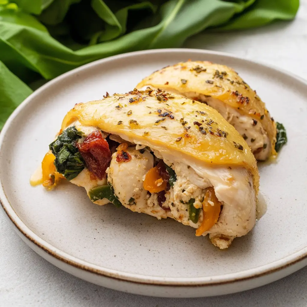 A reliable stuffed chicken breast that looks restaurant-worthy and cooks fast on weeknights. You’ll get a golden crust, a creamy spinach-and-three-cheese center, and two paths—sear-and-bake for best browning or oven-only for simpler cleanup. Use the time guide to hit 165°F perfectly, then slice and finish with a 5-minute pan sauce.