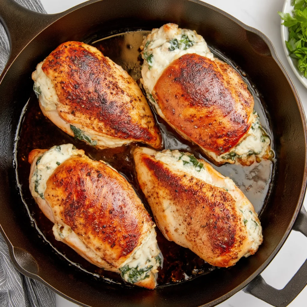 What makes this recipe so appealing is the balance. The chicken gives you a hearty base, while the filling brings in creamy texture, savory flavor, and a little brightness from the sun-dried tomatoes. A quick sear in the skillet gives the outside a golden finish, and the oven does the rest of the work. That combination keeps the recipe approachable while still delivering a dinner that feels complete.